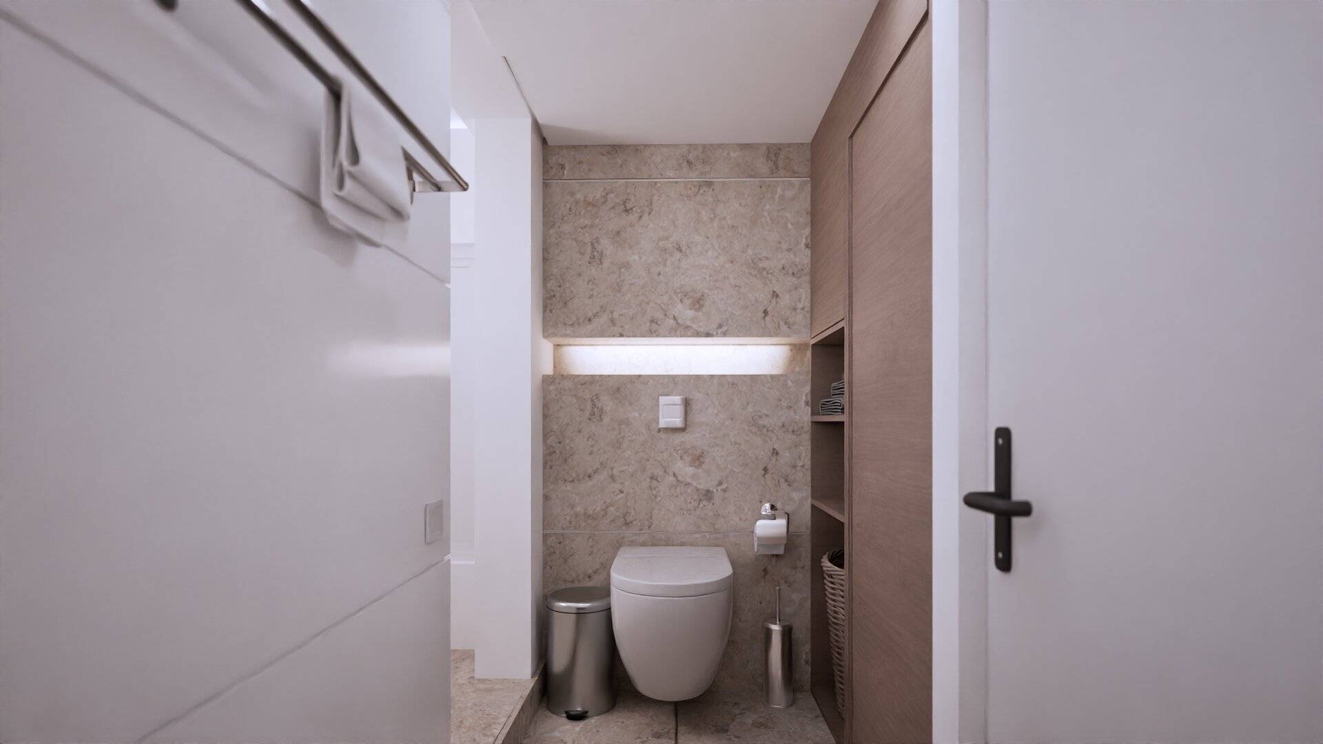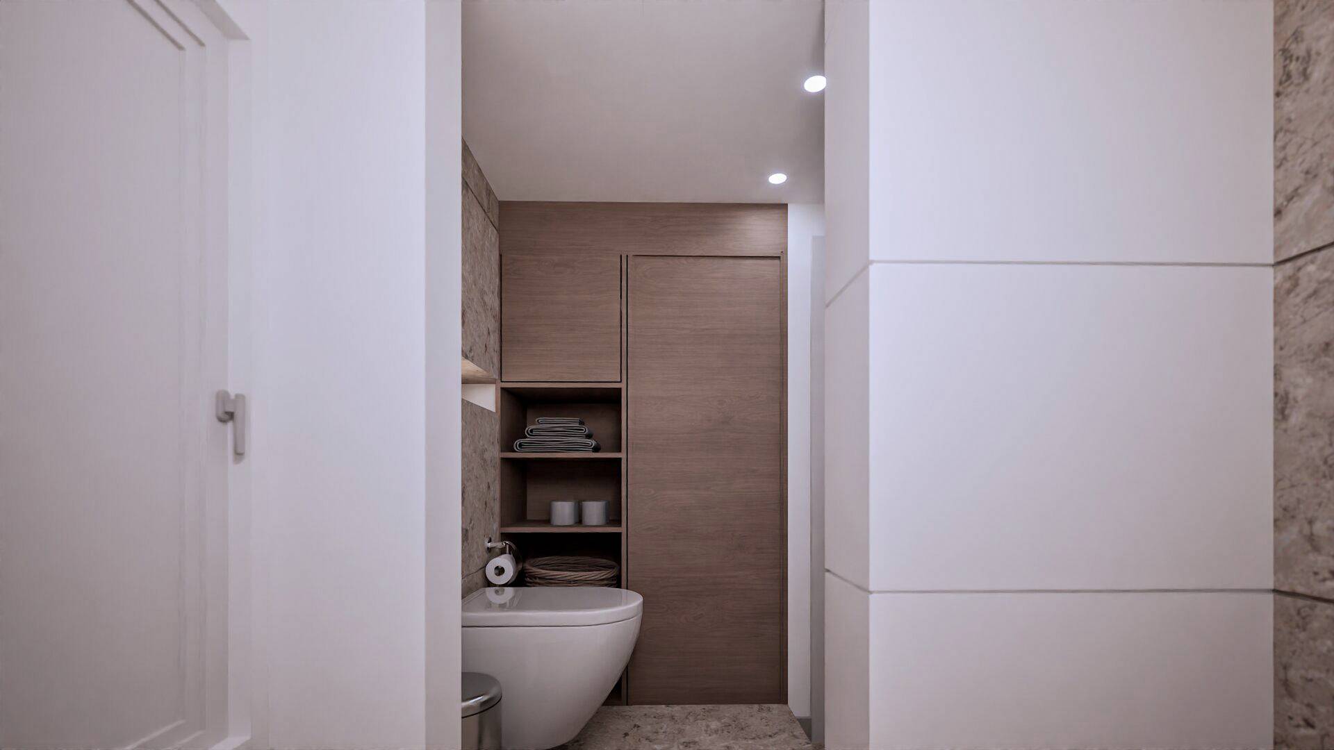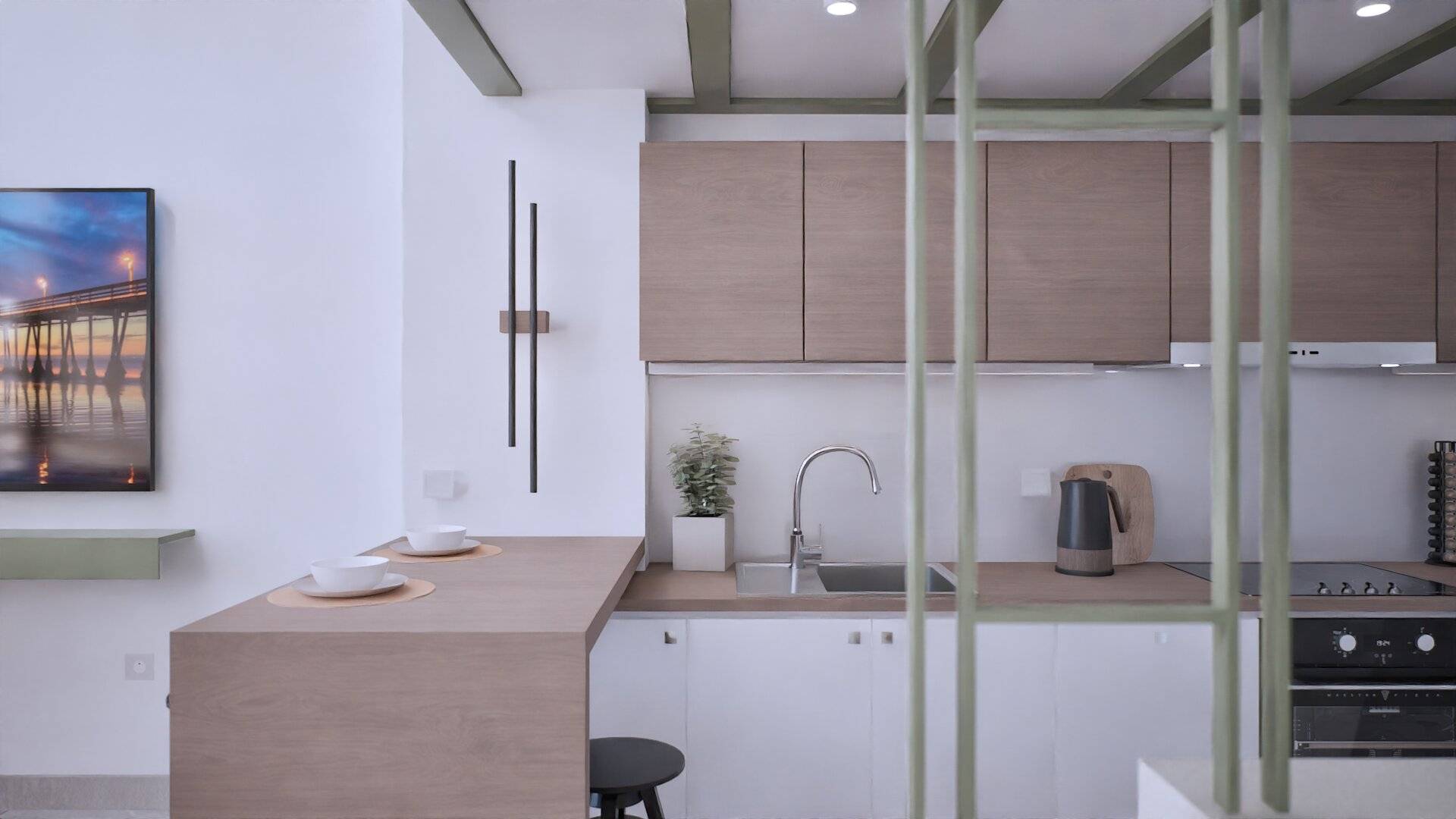 Ο χώρος δεν προσφέρει μόνο λειτουργικότητα· καλλιεργεί ένα αίσθημα οικειότητας και αρμονίας, όπου η καθαρότητα της μορφής συναντά τη ζεστασιά των υλικών και τη ζωντάνια του χρώματος.