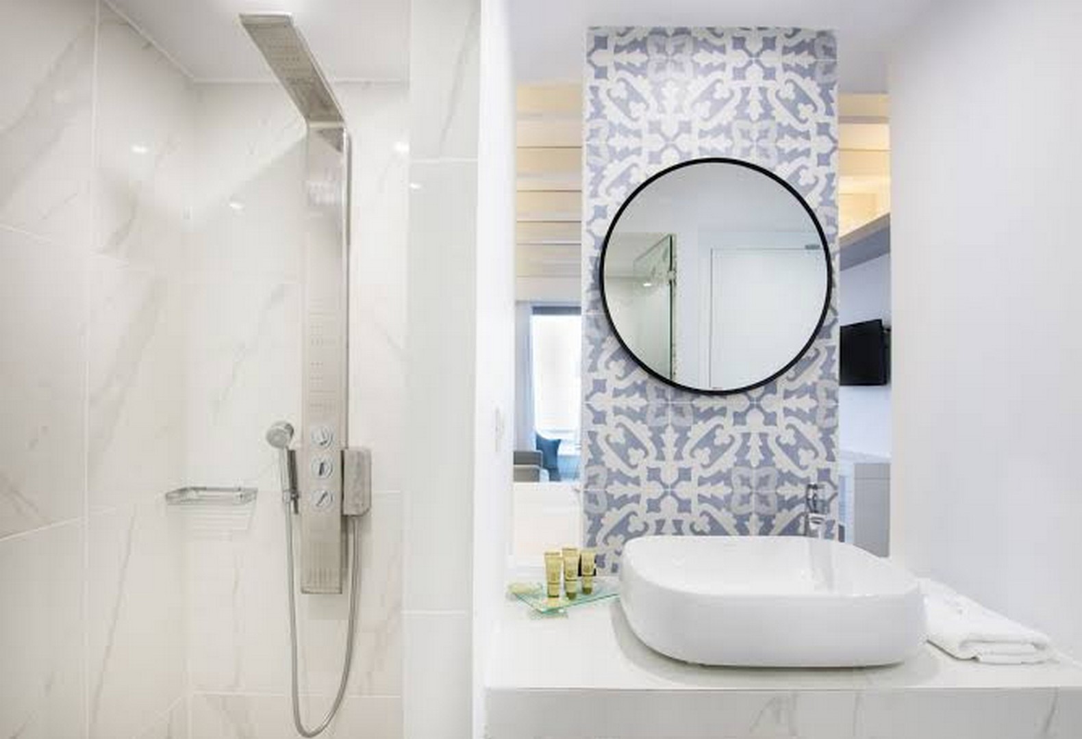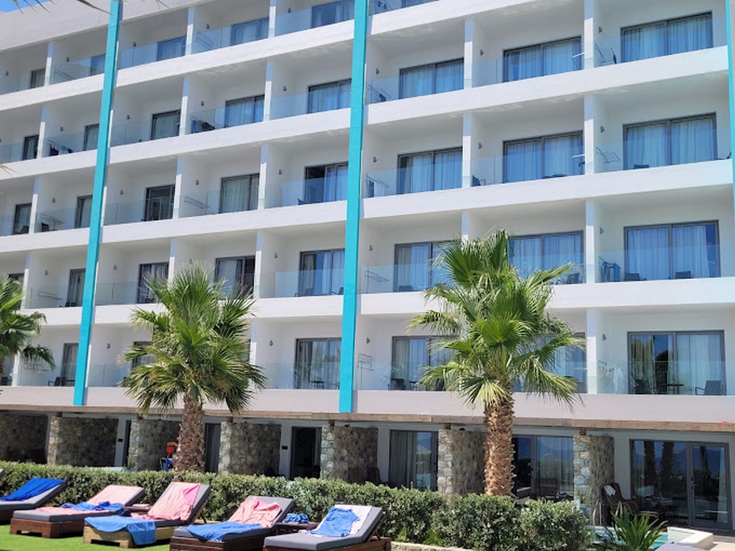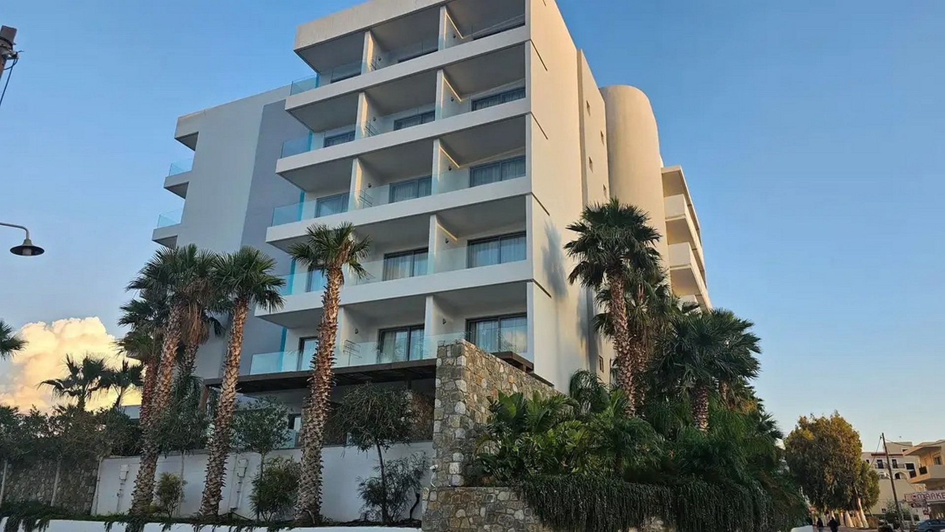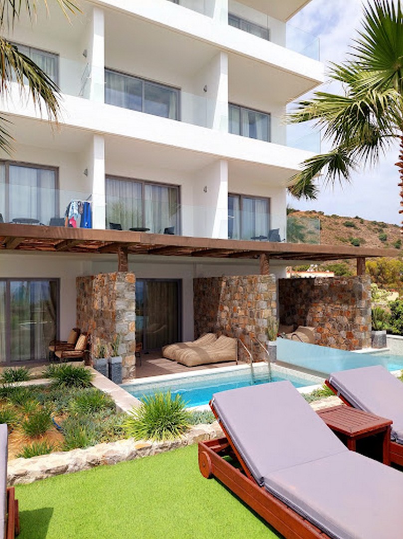 Στο ισόγειο και στους άνω ορόφους βρίσκονται τα δωμάτια του ξενοδοχείου. Τα ισόγεια δωμάτια διαθέτουν ιδιωτική βεράντα με πισίνα, ενώ τα δωμάτια των ορόφων έχουν ατομικό μπαλκόνι με ανεμπόδιστη θέα προς τη θάλασσα. Στο εσωτερικό τους, κυριαρχεί το μινιμαλιστικό ύφος με λευκές και μαρμάρινες επιφάνειες, καθαρές γραμμές και αίσθηση διαφάνειας και φωτός.