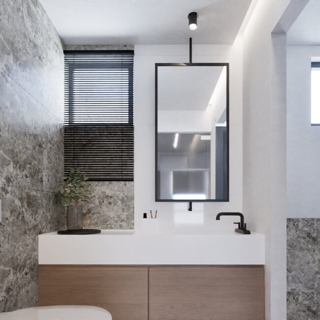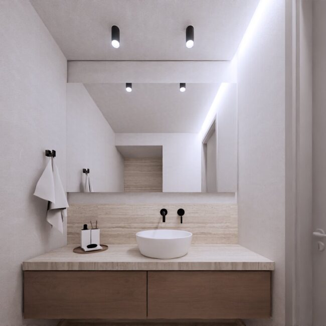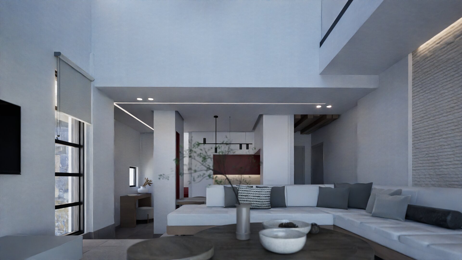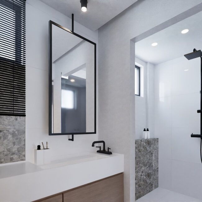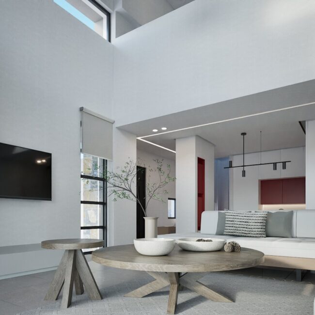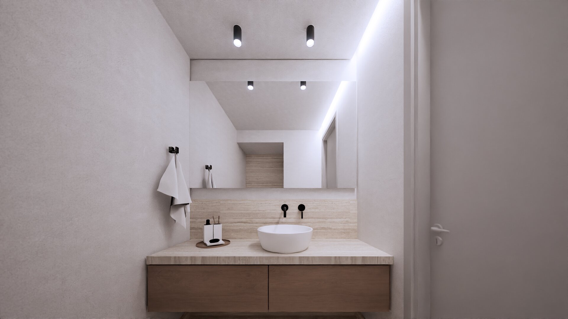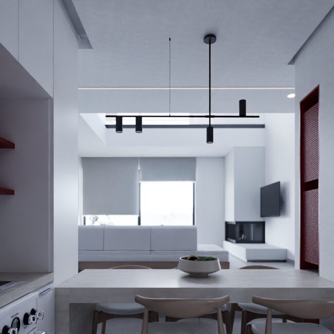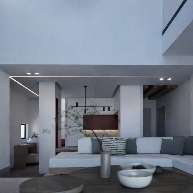 Η γεωμετρία, οι εναλλακτικές των υψομέτρων και η ήπια ένταξη των υλικών συνθέτουν μία πρόταση που ισορροπεί ανάμεσα στην απλότητα και στην κομψότητα.