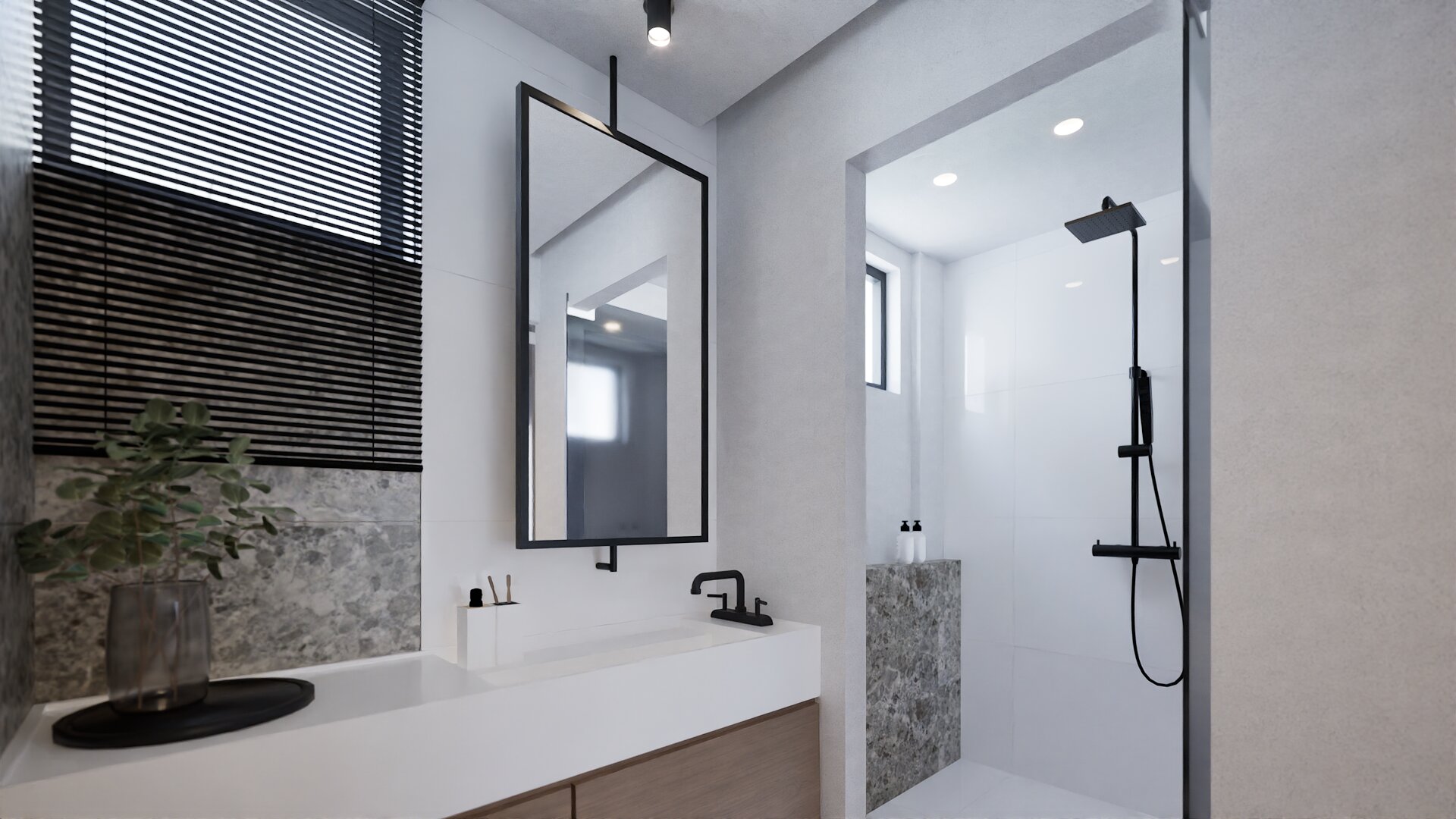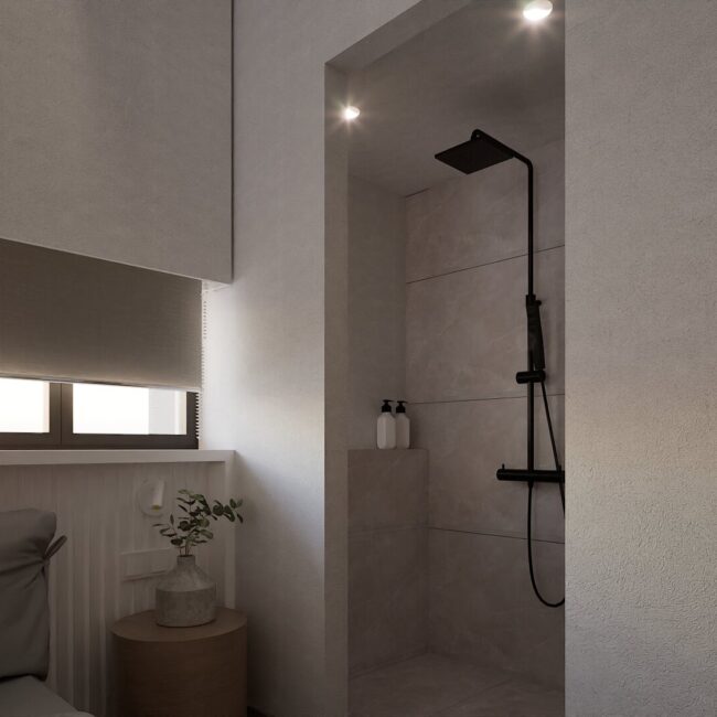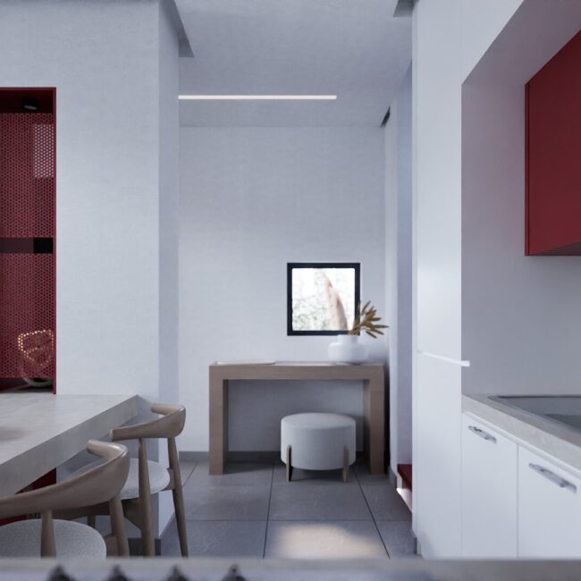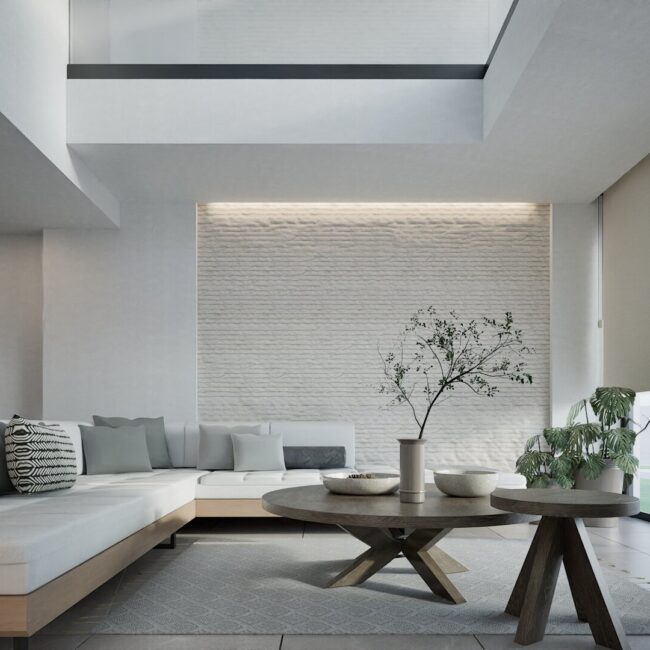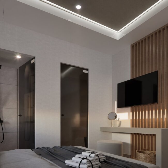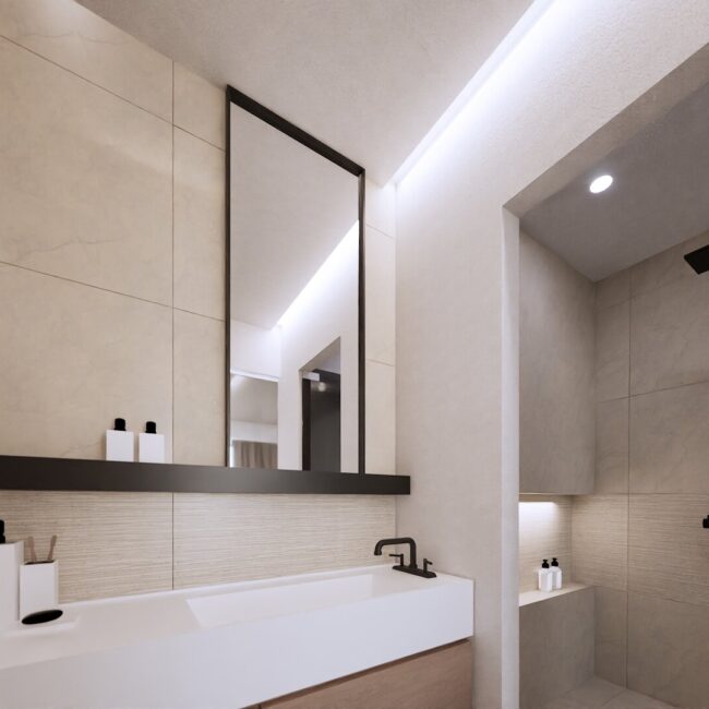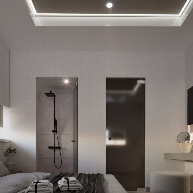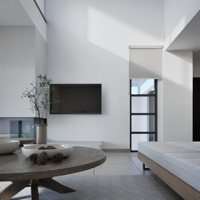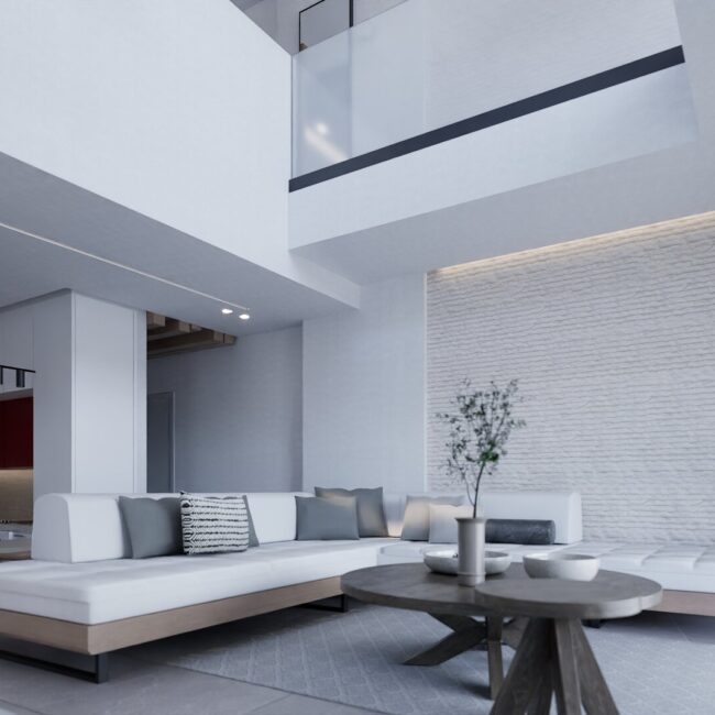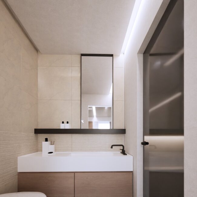 Η γεωμετρία, οι εναλλακτικές των υψομέτρων και η ήπια ένταξη των υλικών συνθέτουν μία πρόταση που ισορροπεί ανάμεσα στην απλότητα και στην κομψότητα.