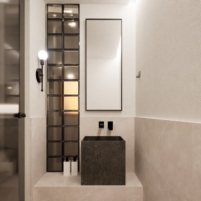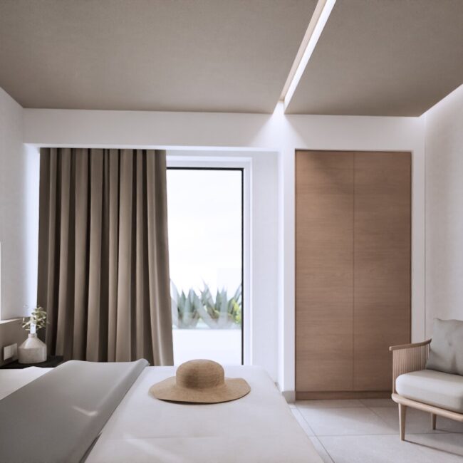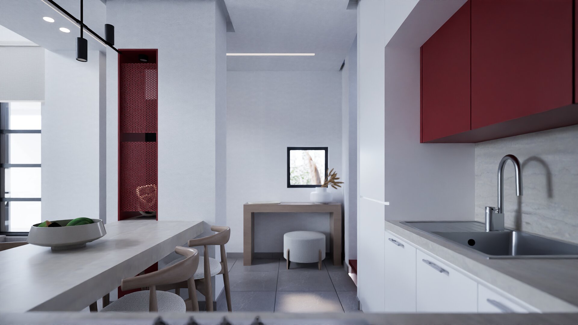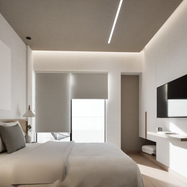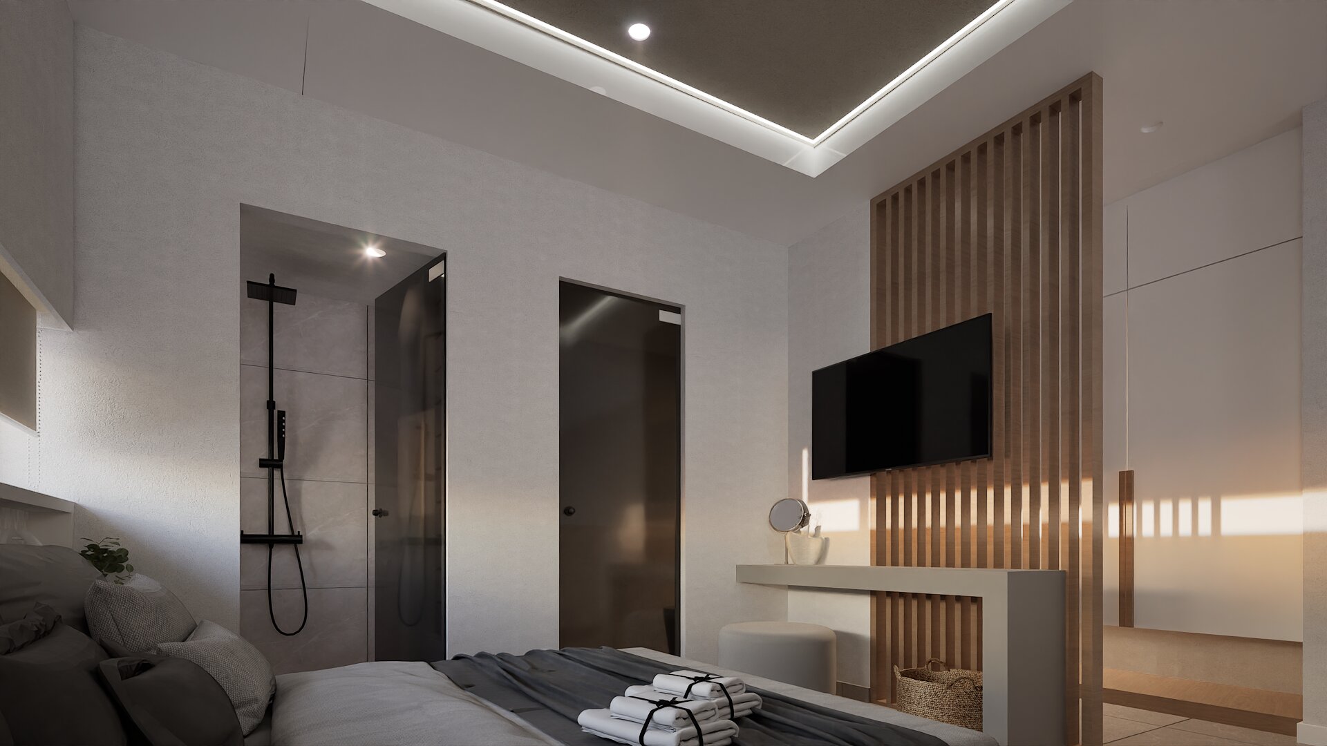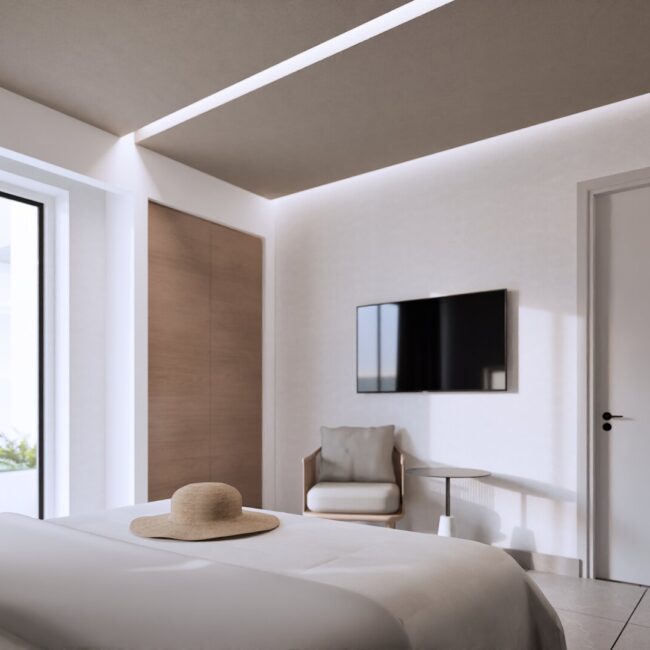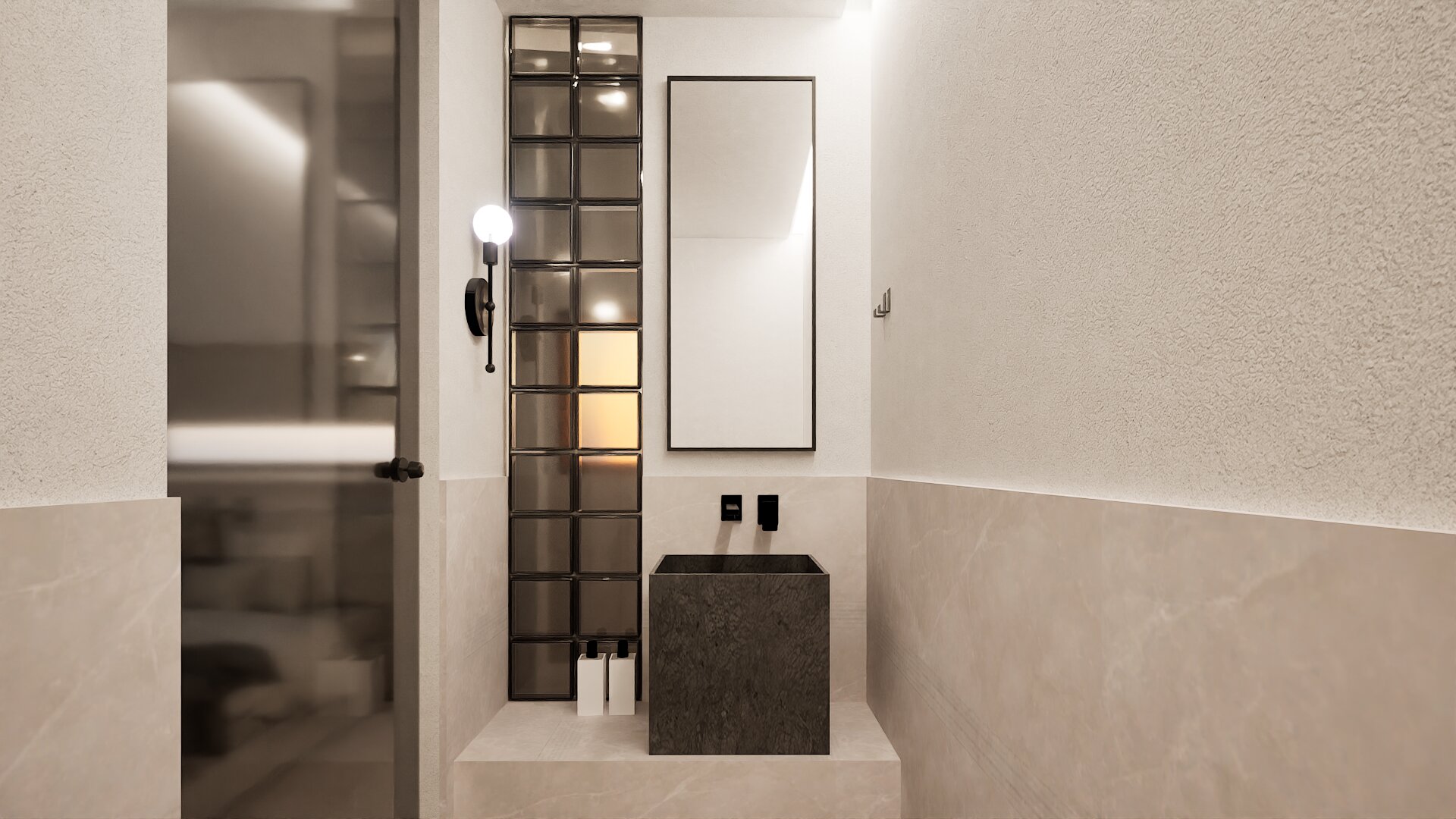 Η γεωμετρία, οι εναλλακτικές των υψομέτρων και η ήπια ένταξη των υλικών συνθέτουν μία πρόταση που ισορροπεί ανάμεσα στην απλότητα και στην κομψότητα.